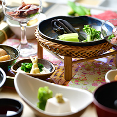 - 妙高の旬の高原野菜をメインとしたヘルシーなプラン。四季折々の食材を使った料理や、笹で酢飯を包んだ笹箕ずし、里芋の醤油煮など新潟を代表する当宿自慢の郷土料理とともにお楽しみください。