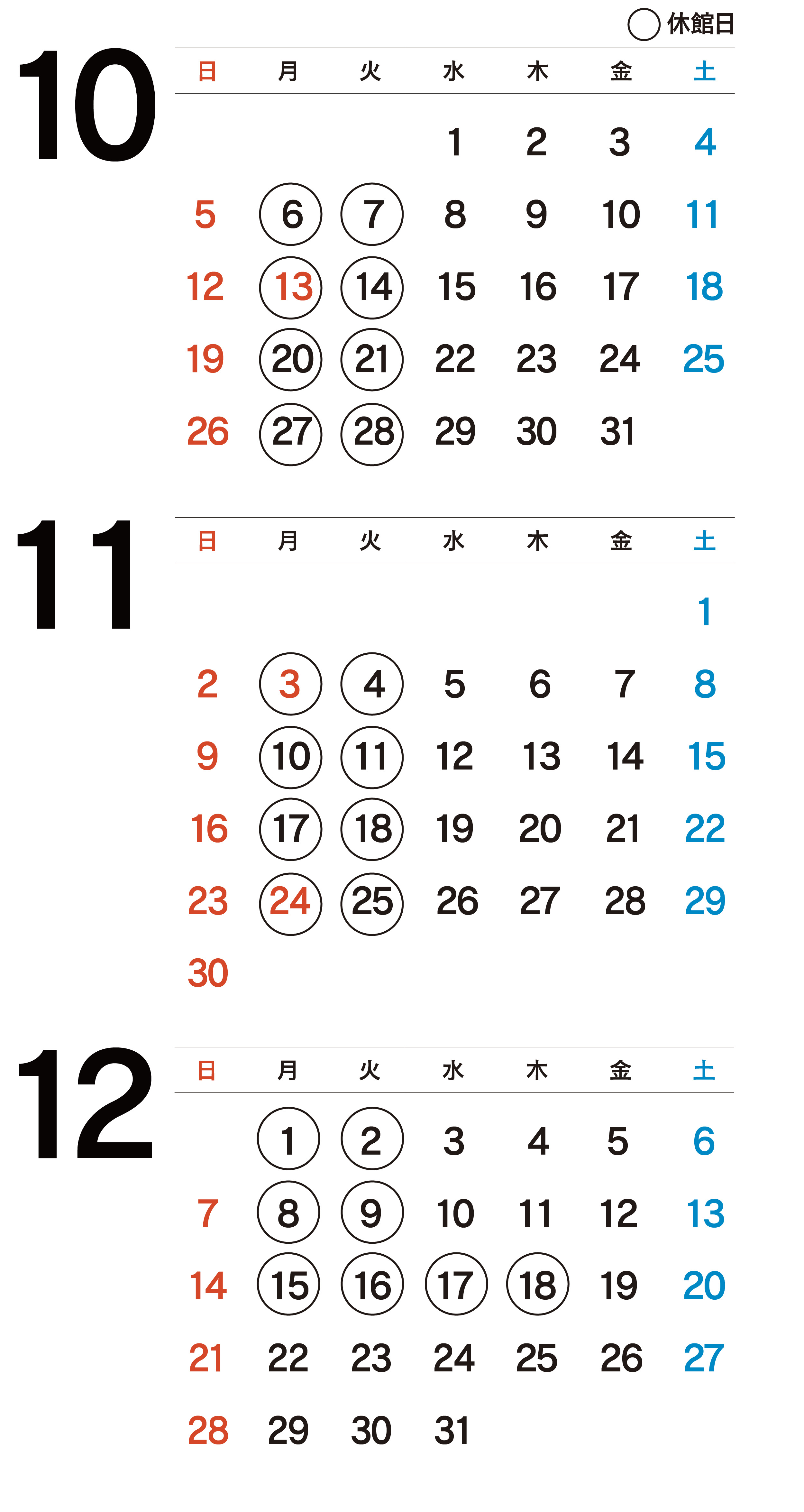 休館日のお知らせ
