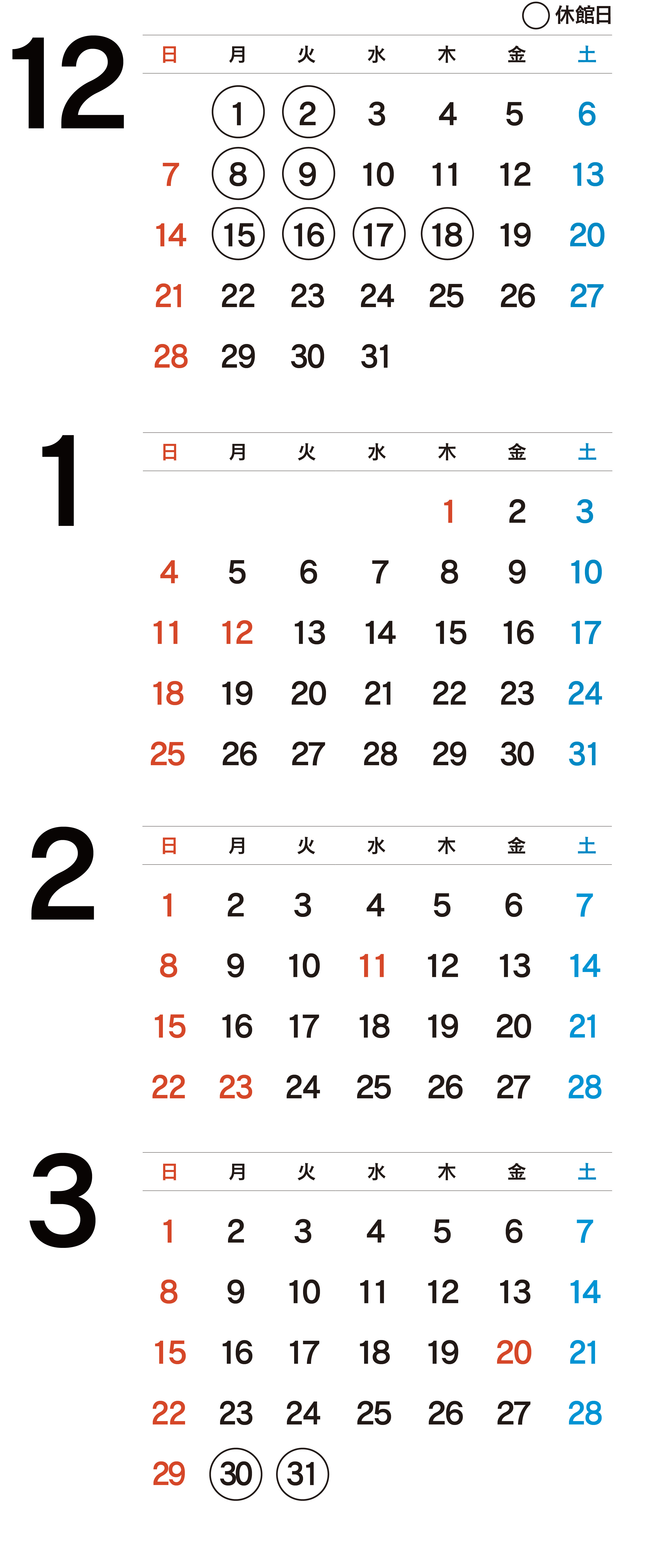 1日(月)・2日(火)・8日(月)・9日(火)・15日(月)・16日(火)・17日(水)・18日(木)