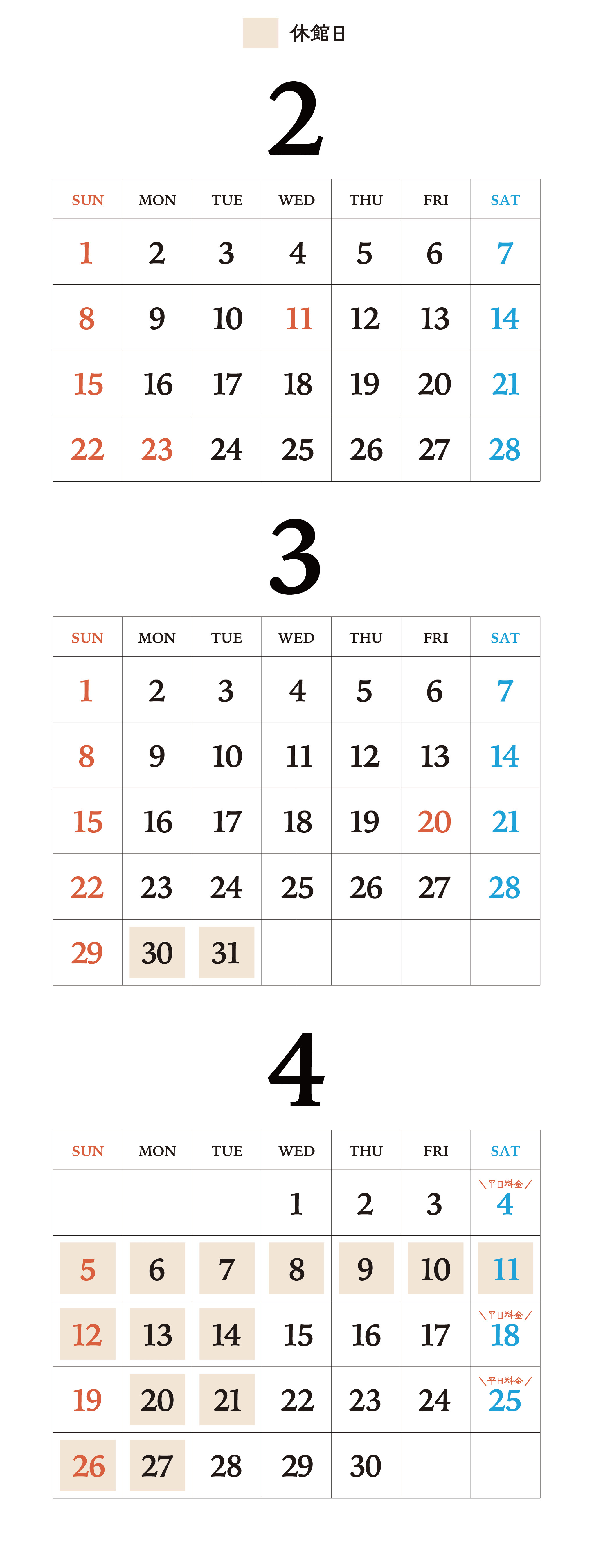 2月の休館日はありません。