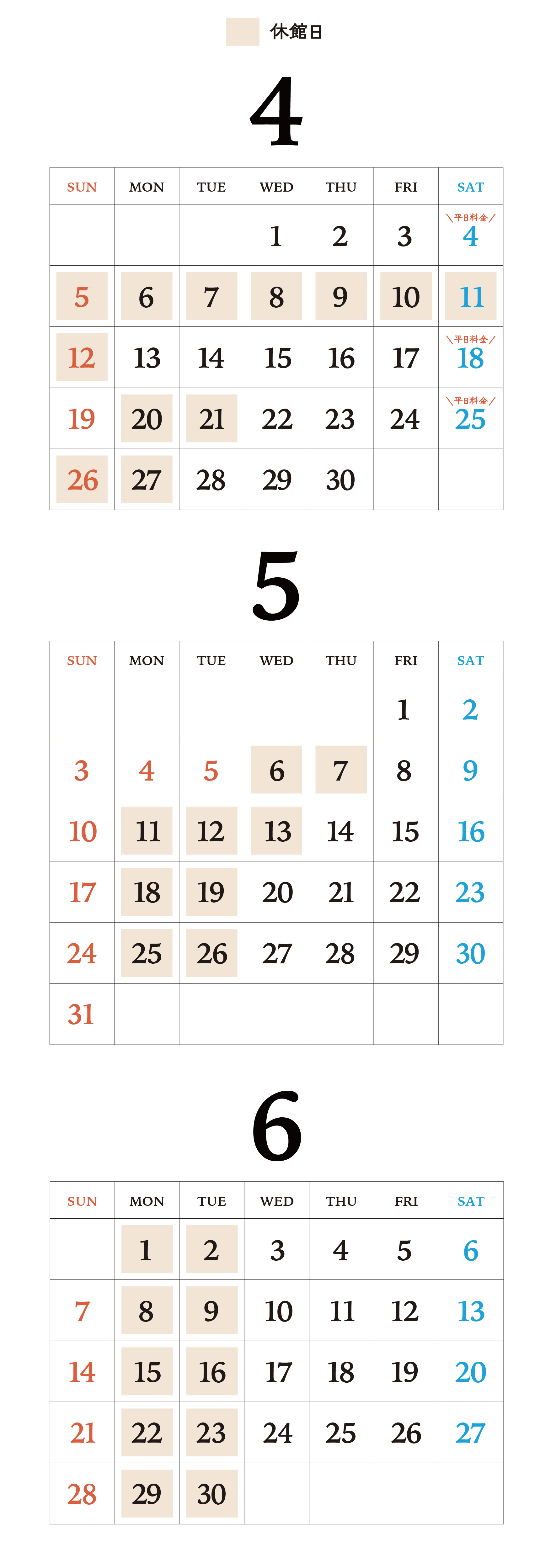 1日(月)、2日(火)、8日(月)、9日(火)、15日(月)、16日(火)、22日(月)、23日(火)、29日(月)、30日(火)