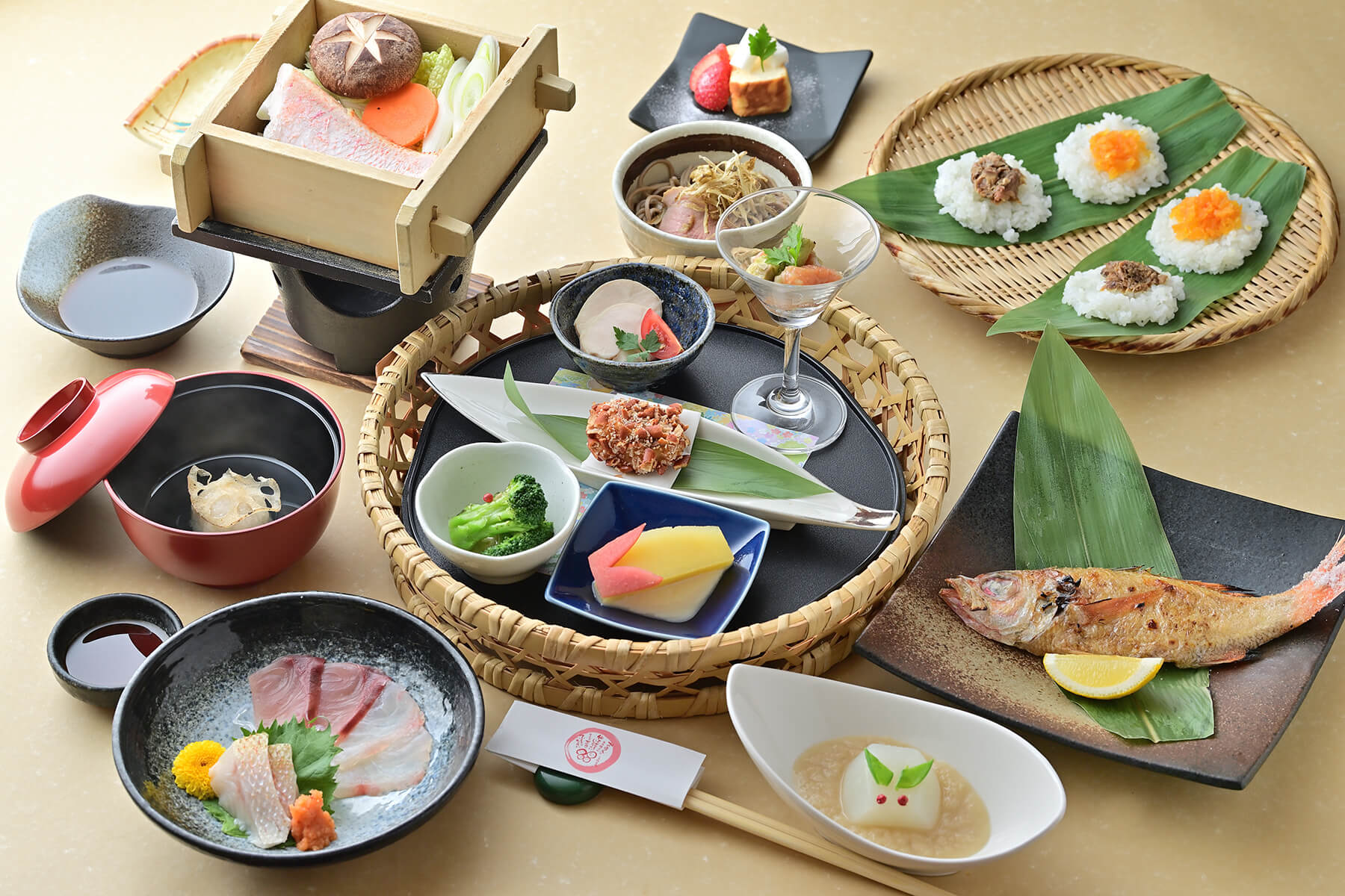 脂の乗った「のどぐろ」を季節の地魚と合わせて盛り付けた「薄づくり」は、妙高特産の香辛料「かんずり味噌」に「ポン酢ジュレ」「ワサビ」などの薬味でお召し上がりください。