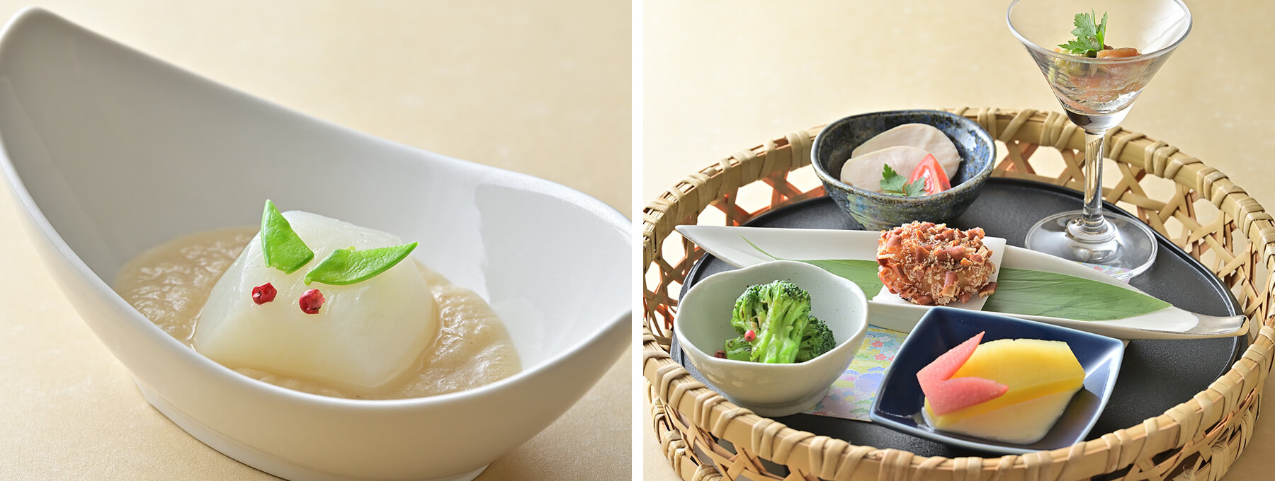 ほのかな甘みのリンゴうさぎと、なめらかな白和え衣が織りなす優しい一品です。