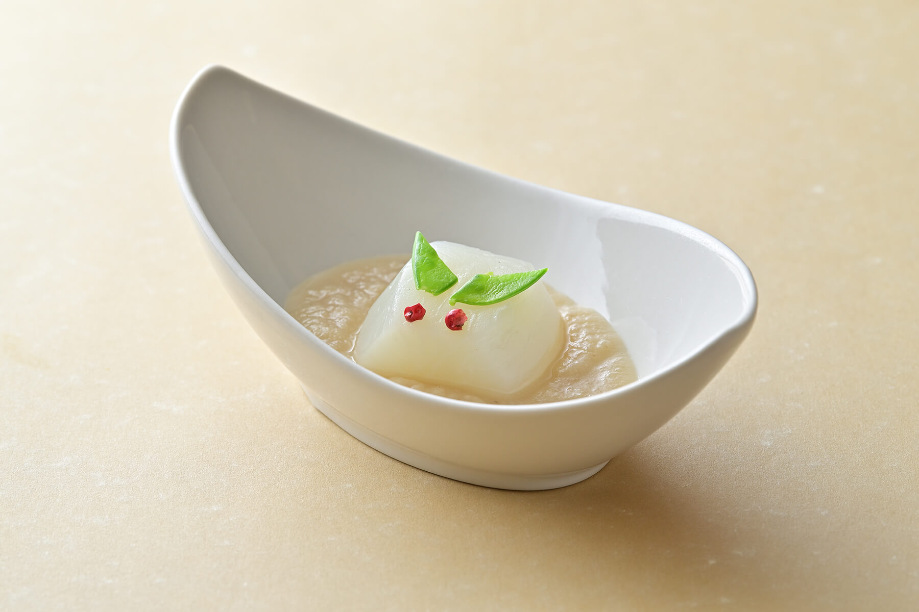 バター香るソースと蕪のまったりとした味わい。うさぎに見立てました。