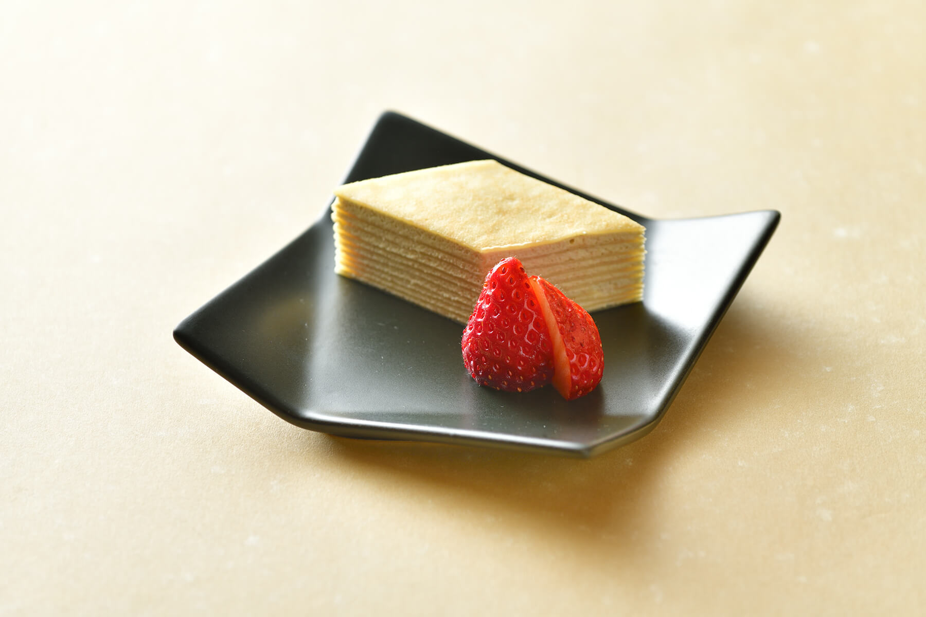 クリームにウグイスきな粉を合わせ、クレープ生地と重ねた和風ミルフィーユです。