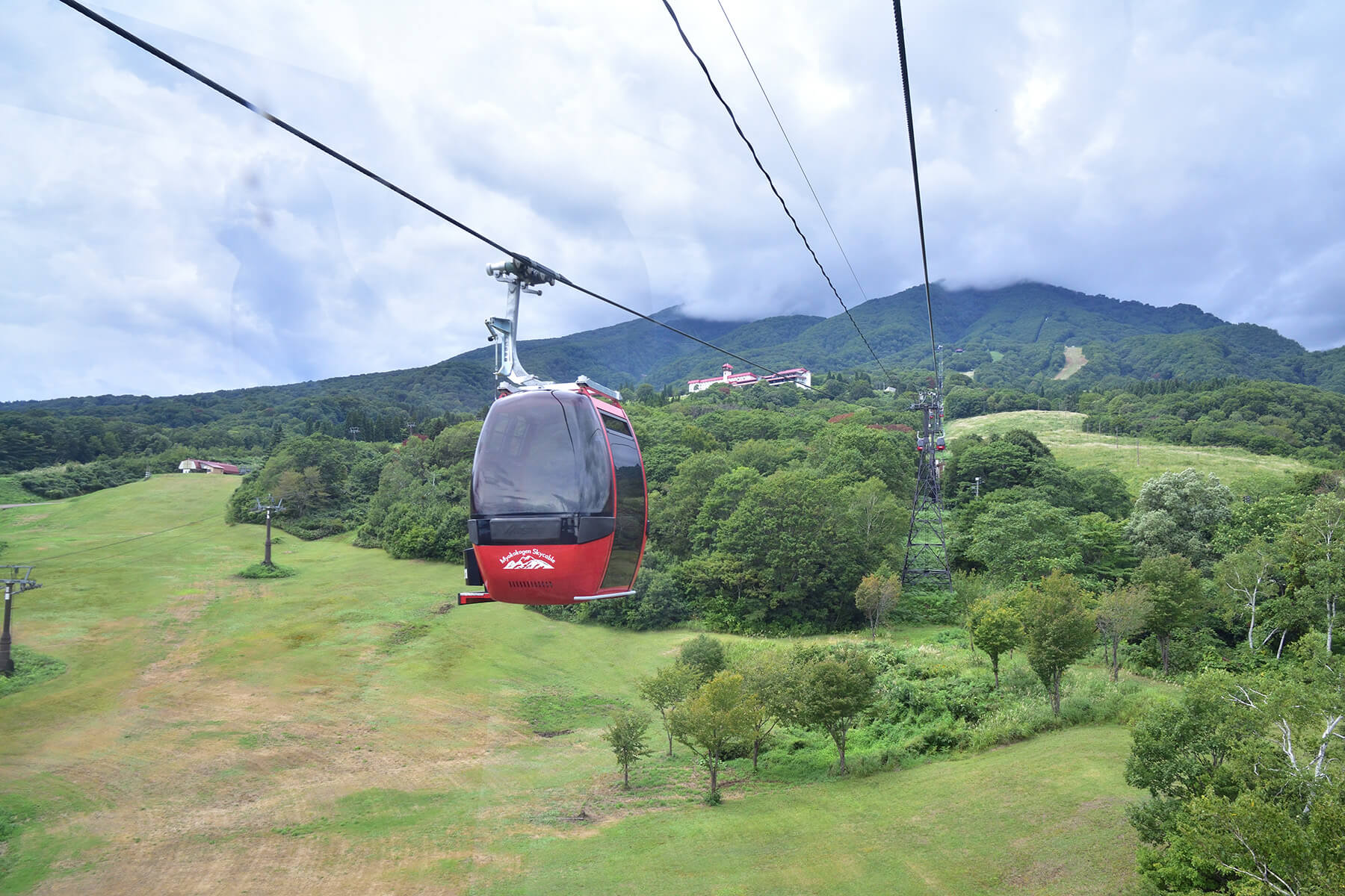 向こうに見える山々は遠くは苗場山、手前は太平山など、標高1300mならではの大パノラマを楽しめます。